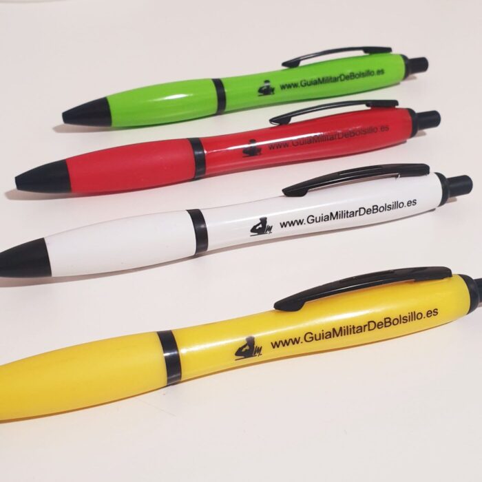 Bolígrafos personalizados en varios colores.