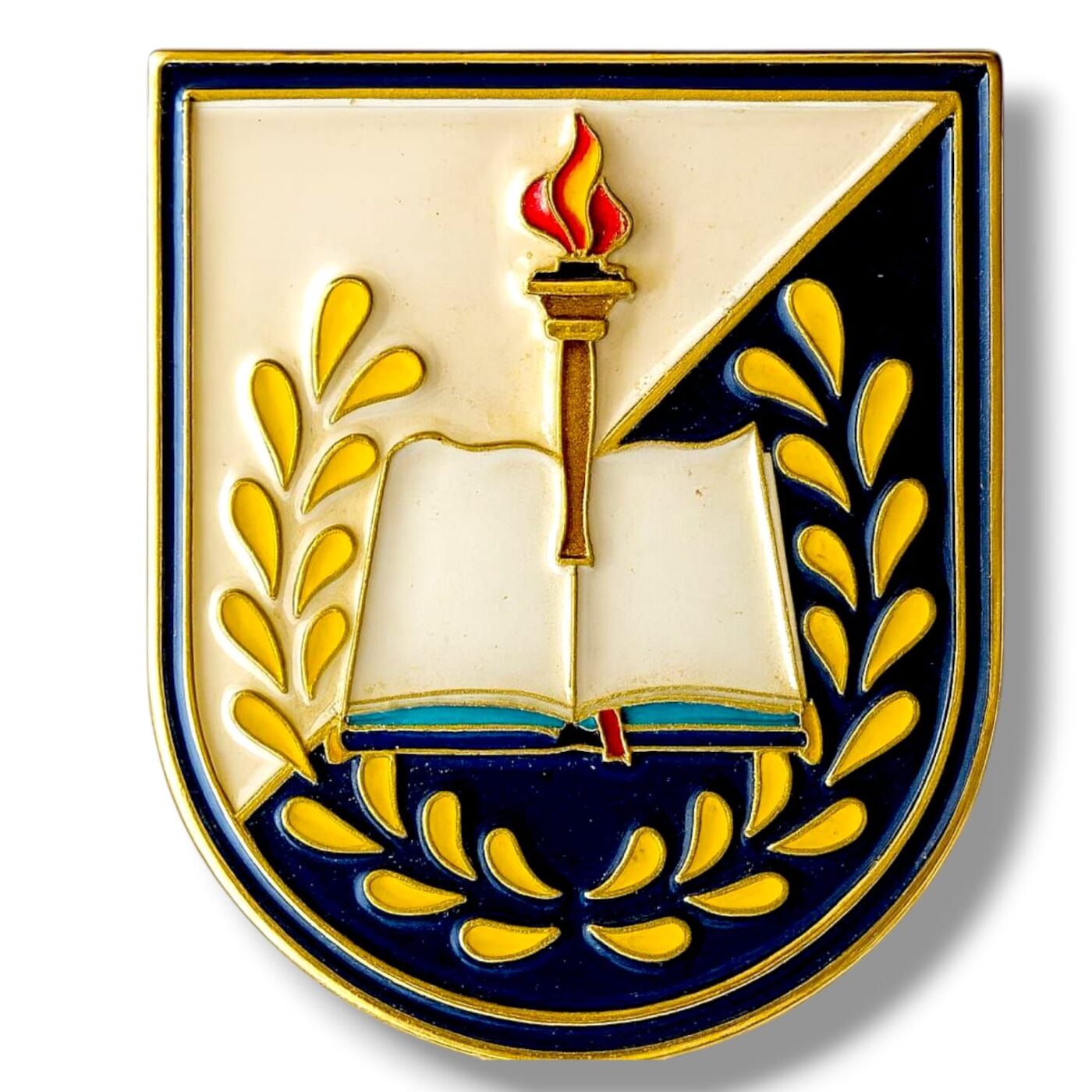 Palabras clave SEO: distintivo Policía Nacional gestión y apoyo, insignia función administrativa CNP, distintivo antorcha libro Policía, pin Policía Nacional formación, escudo Policía funciones administrativas.