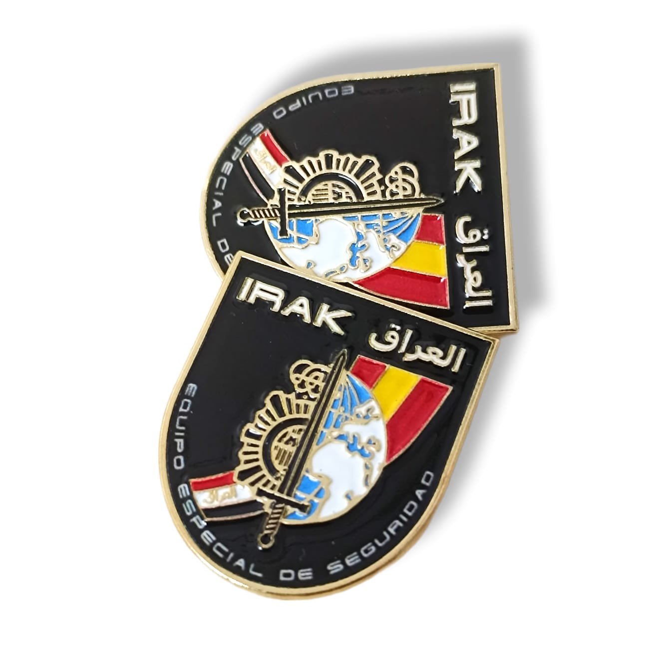 Se trata de un Distintivo “no regulado” diseñado como homenaje para la Policía Nacional y demás funcionarios que prestan o han prestado servicio en el Equipo Especial de Seguridad de la Embajada de España en Irak.