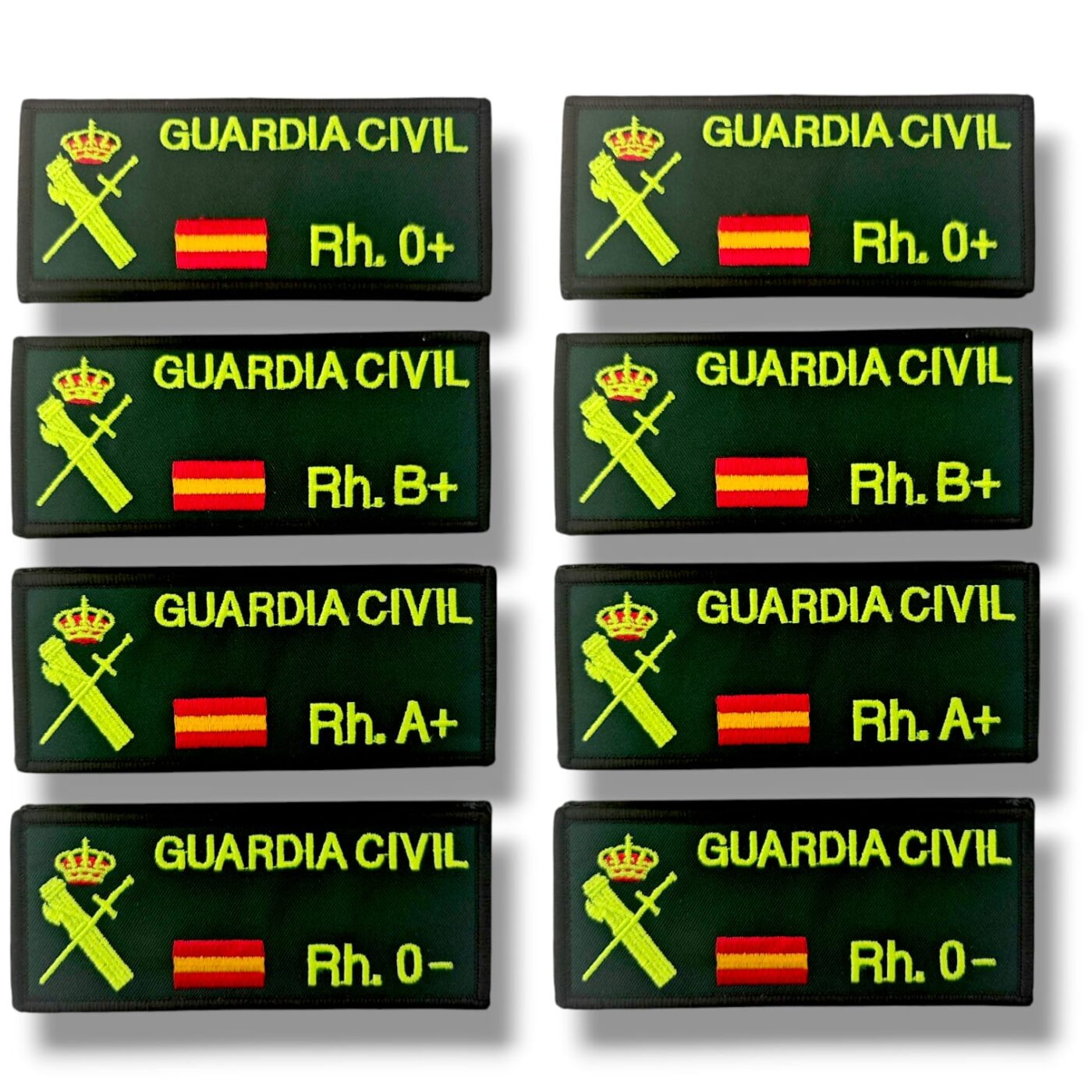 Palabras clave SEO: galleta bordada guardia civil, grupo sanguíneo pecho velcro, parche grupo sanguíneo bordado, identificación médica táctica, parche Rh Guardia Civil, velcro bordado uniforme, galletas personalizadas policía, bordados militares España, distintivo grupo sanguíneo Guardia Civil