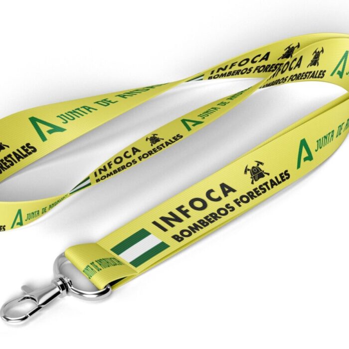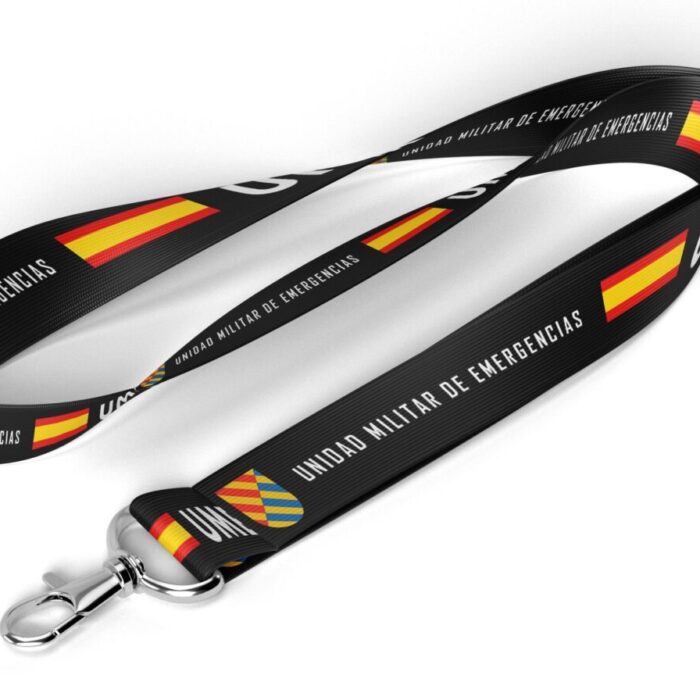 Lanyard en poliéster sublimado con mosquetón metálico. De alta calidad, durabilidad y detalle.