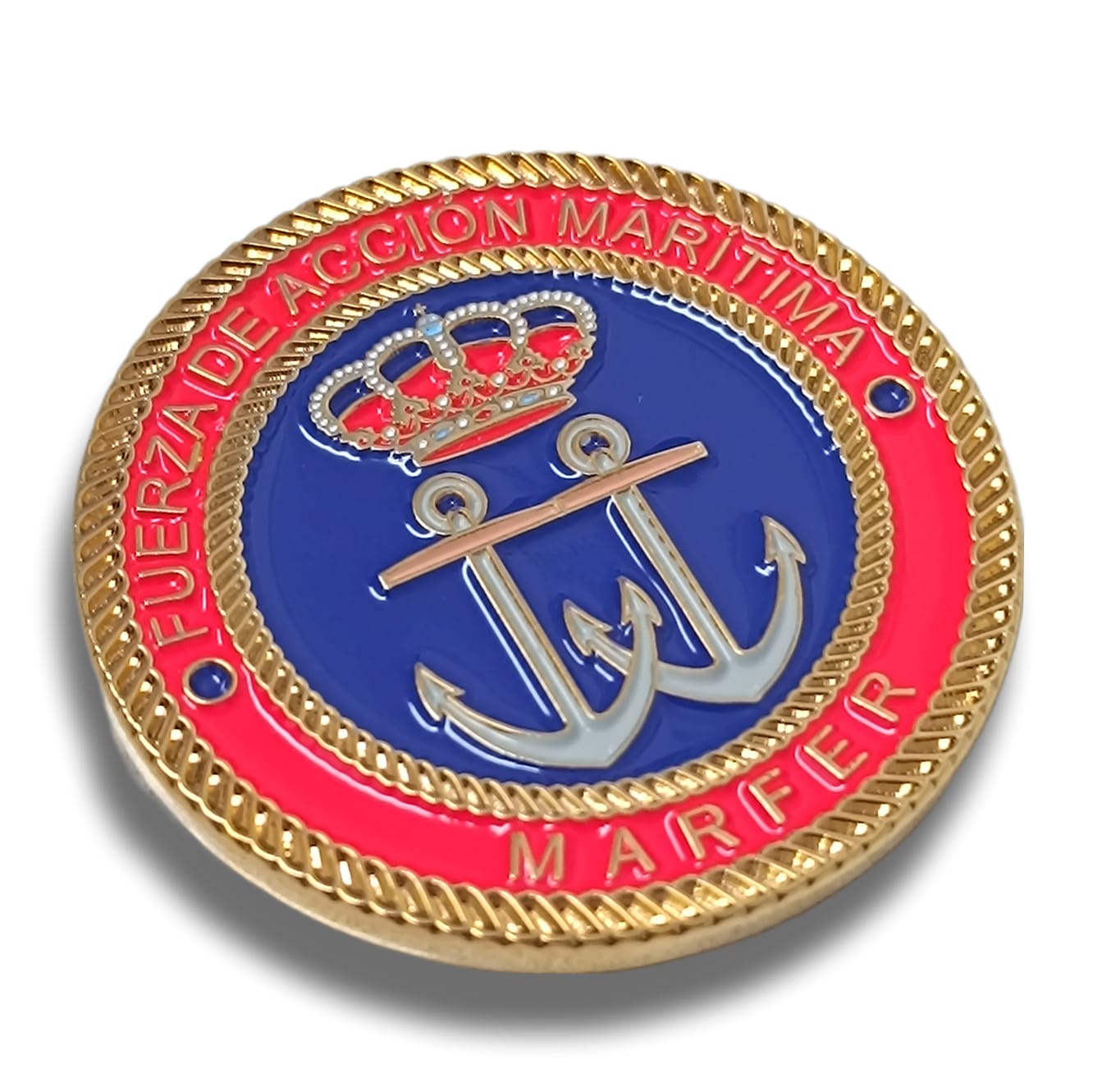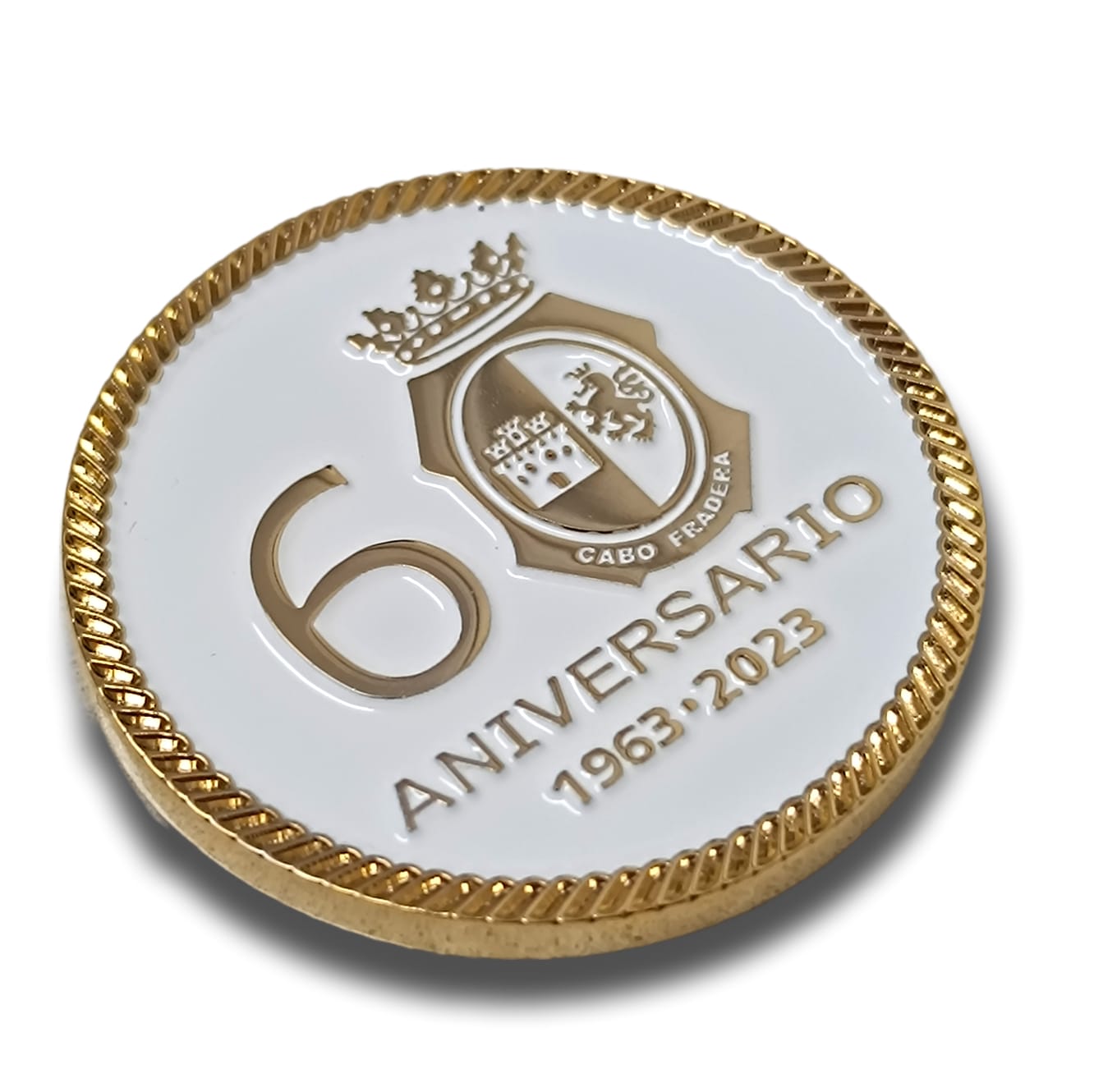 El acabado en níquel le otorga un brillo especial y, su esmaltado en tres colores, rojo, azul y blanco, realza la belleza de esta moneda personalizada y la hace aún más significativa.