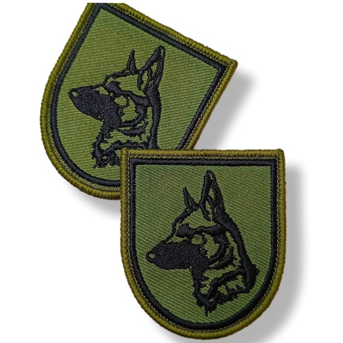 Bordado de equipo cinológico en verde y negro con alta calidad y detalle.