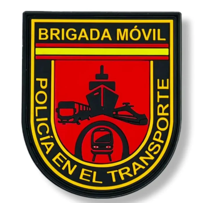 Descubre el parche Brigada Móvil Policía en el Transporte de la Policía Nacional, disponible en guiamilitar.es.