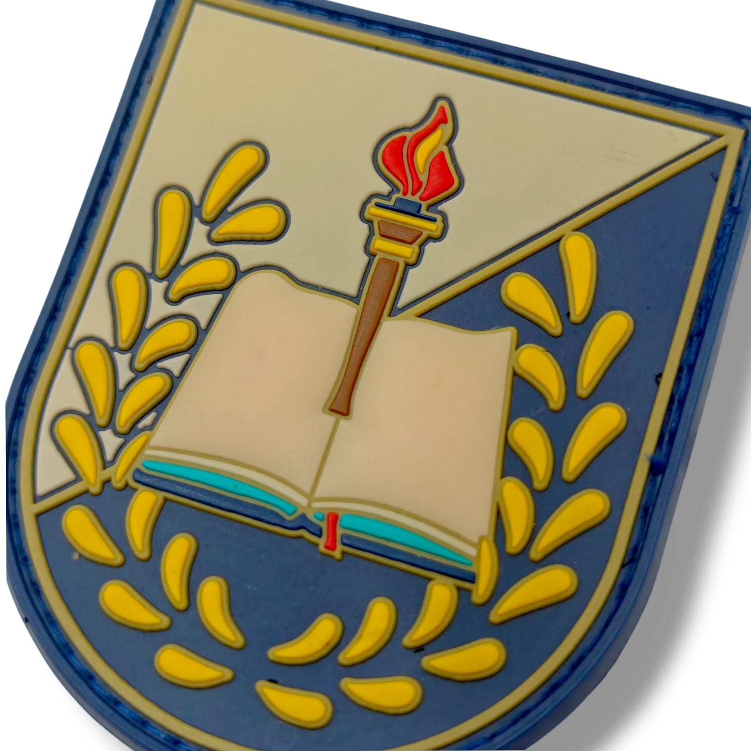 Este parche PVC 8 x 6,7 cm con velcro posterior cosido representa a los profesionales destinados en funciones administrativas, educativas, logísticas y de soporte estratégico, esenciales para el correcto funcionamiento de la estructura policial.