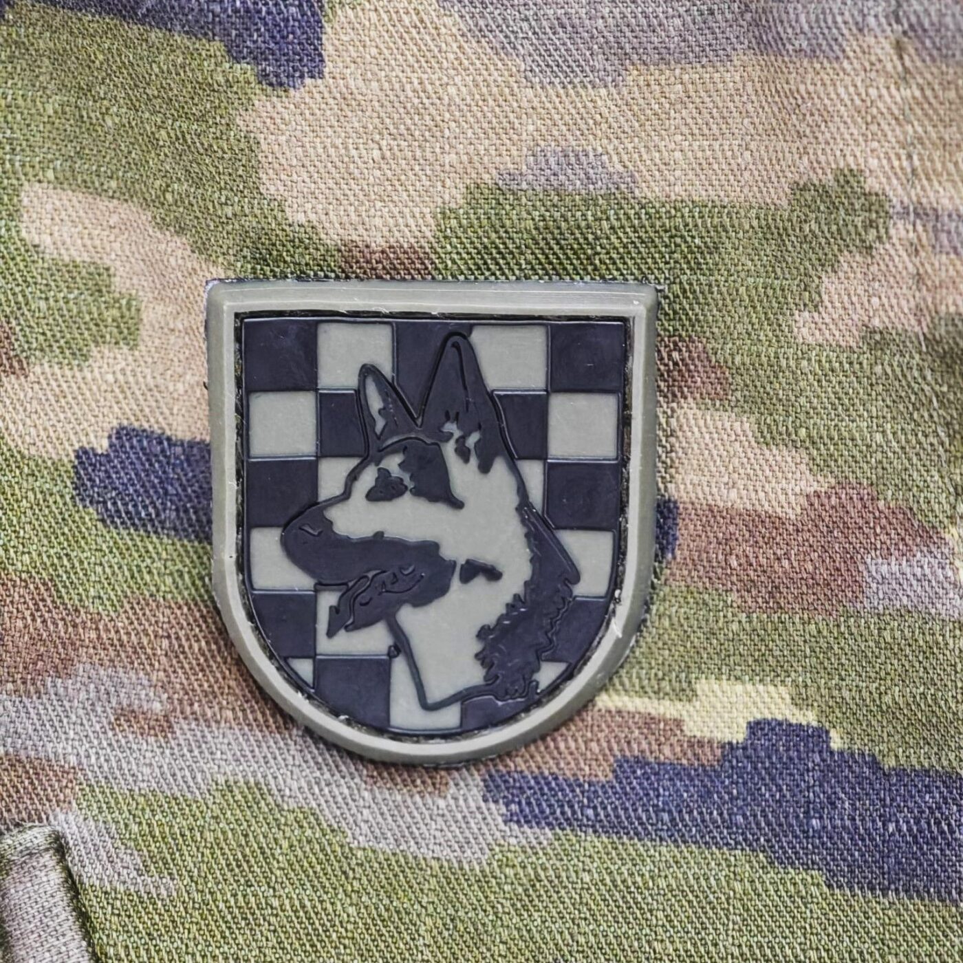 Fabricado en PVC de alta calidad y relieve con velcro cosido en la parte trasera. Curso Guía Canino de Ejército de Tierra y otros organismos. Para portar en uniforme o vestimenta oficial.