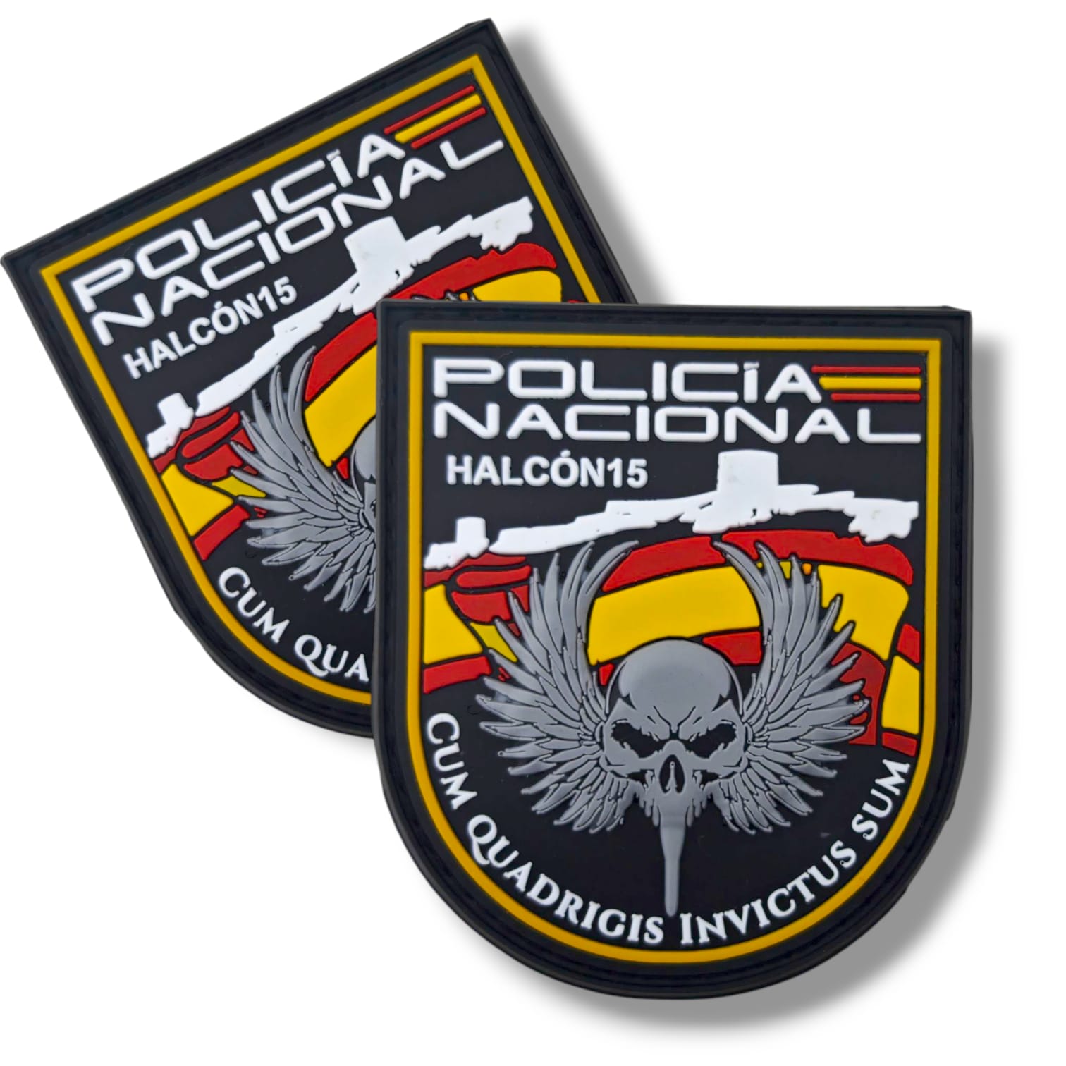 Parche fabricado en PVC de alta calidad y detalle con velcro cosido en la parte trasera, emblema de Halcón 15 de la Policía Nacional.